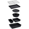 This Salter Bakes 7 Piece Stackable Bakeware Set is ideal for creative bakers who want to turn out perfect results every time. The set contains a baking tray, cake tin, tart tin, loaf pan, brownie pan, roasting tin, and cooling rack, all of which feature a non-stick coating for easy cleaning. The black design looks great in any kitchen and the set is perfect for compact storage in a cupboard. It is also suitable for a wide variety of baking and roasting tasks and is oven safe up to 220°C*.