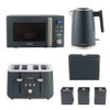 Marino Kettle, 4 Slice Toaster & Microwave Set - with Canisters & Bread Bin - Blue /Grey