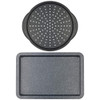 Bake delicious treats for your friends and family with this high-performance Megastone pizza pan and baking tray set from Salter. Featuring an intelligent PFOA-free Megastone non-stick coating, this bakeware set is perfect for cooking crispy pizzas and chips, and baking fish and vegetables with little to no oil. Made with strong and durable carbon steel, you can expect long-lasting quality, perfect for use time and time again.