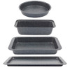 - The 4-piece set includes a 37 cm baking tray, 36 cm roaster, 24 cm round cake tin, and a 27 cm loaf pan for all your baking needs.
